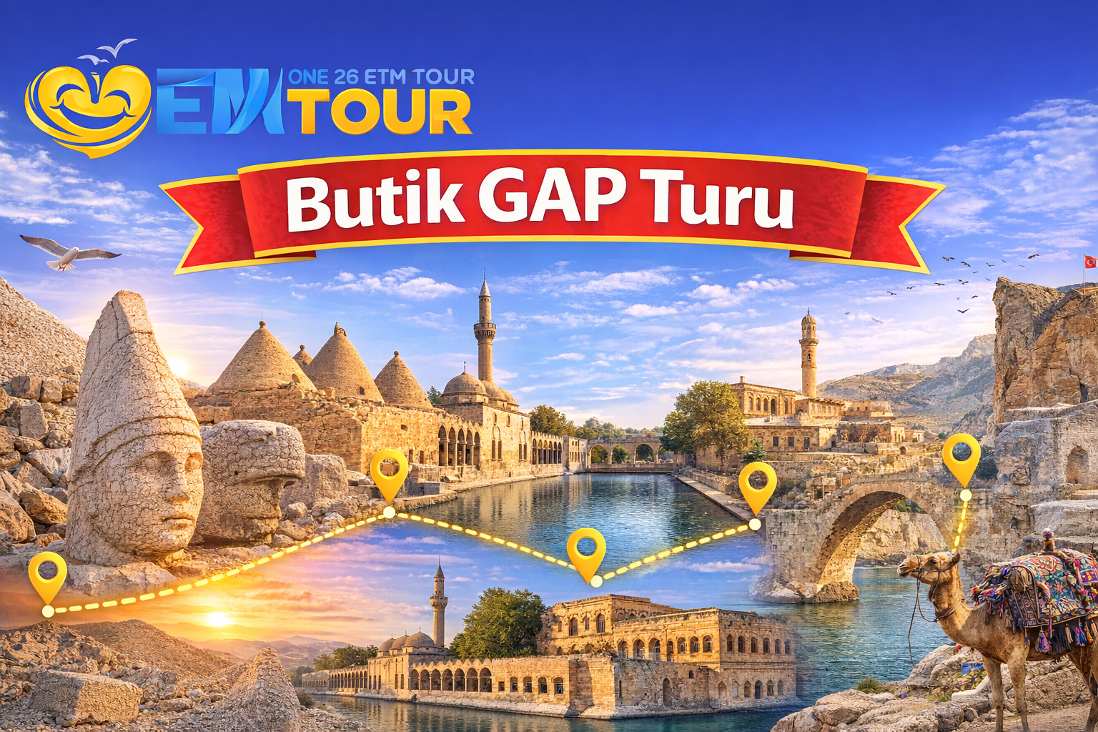 Siz değerli misafirlerimizle buluşmamızın ardından düzenlemiş olduğumuz Butik Gap Turu yolculuğumuza başlıyoruz. Sabah saatlerinde bölgeye varmamızın ardından gezimize ilk olarak Halfeti Batık Şehir de nehir kenarında kahvaltımızla (extra) başlıyoruz. Kahvaltımızın ardından meşhur Batık Cami'yi görmek üzere teknemize (extra) geçiyoruz. Tekne gezimizi tamamladıktan sonra aracımıza geçerek Adıyaman’a doğru devam ediyoruz. Adıyaman’a vardığımızda Nemrut Dağı için transfer aracımıza binerek Nemrut Dağı'na doğru yolculuğumuz başlıyor. Rehberimizin anlatımı verilen serbest zaman eşliğinde Nemrut Dağı'nda gerçekleşiyor. Profesyonel turist rehberi tarafından yapılan anlatım ve 1987 yılında UNESCO'nun dikkatini çekip koruma altına alınmış büyüleyici manzara eşliğinde günümüze devam ediyoruz. Buradaki gezimizi tamamladıktan sonra tekrardan araçlarımıza geçerek otobüsümüze doğru yola çıkıyoruz. Otobüsümüze biniyoruz ve otelimize doğru yola çıkıyoruz.